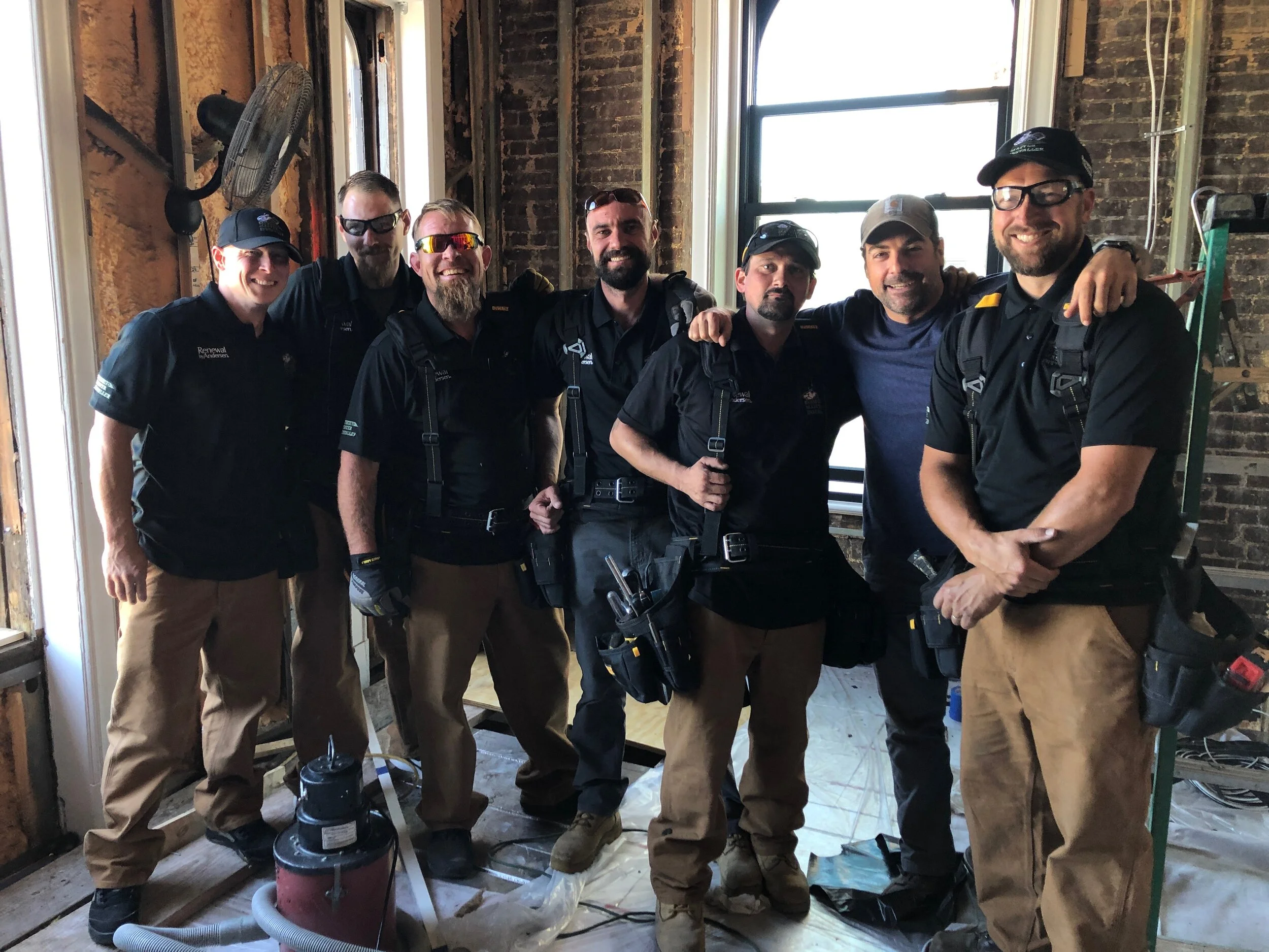The old doors that led out to the roof deck were French doors, that had no business being in a door opening that small, so the first thing I did was design each door as a single out-swing to allow for the largest walk out opening possible. Renewal was also able to custom fabricate the arched top to fit in the existing opening, which was super important, because, again, being a historic facade I could not make changes to the exterior. And once the guys were on site to install they took the time to painstakingly trim out and scribe the trim to match up to the brick around each door opening. The level of pride these guys took in their work was impressive, and I am so thankful for that install crew.